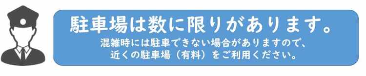 - 近隣住民の皆さまのご迷惑となりますので、 路上駐車やエンジンをかけたままの駐車はご遠慮ください。