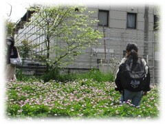 れんげ畑でお花つみ~牛乳パックで花かご作り~