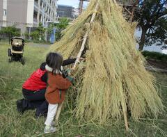 キッズパークで取れたわらで、「わらの家」をつくろう!