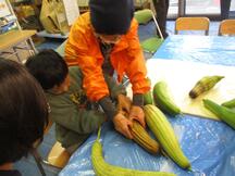 もみすりコーナです。すり鉢でゴリゴリもみをすると、中から玄米が出てきますよ!