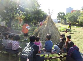 キッズパークをぐるっとまわりながら植物で遊んでいろいろな発見をしました。