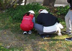 絵本の広場の後に、キッズパークの中にある春の花を探して花かごを作りました。