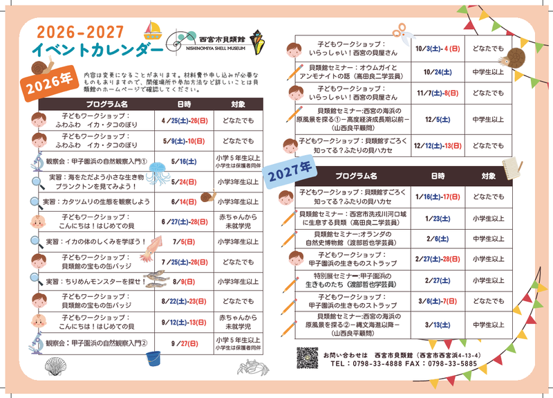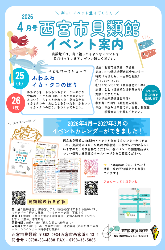 【西宮市貝類館イベント情報】子どもワークショップ 他