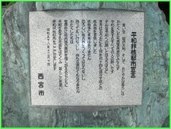 西宮市は、平和非核都市宣言碑、平和非核都市宣言標柱、平和非核都市宣言看板を市内各所に設置しています。
