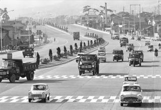 西宮市内は神戸方面から万国博会場への通行車両が急増することは容易に推測されました。そのため、大阪での万国博開催が決定した昭和41年より大規模な道路整備計画が練られました。