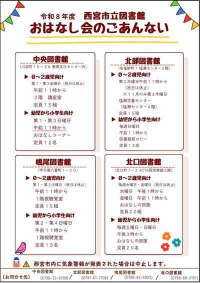 令和8年度西宮市立図書館おはなし会チラシ(PDF:307KB)