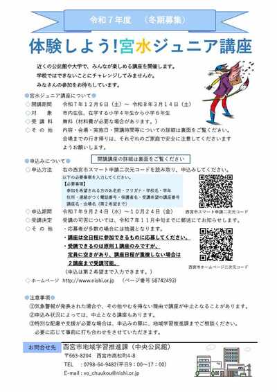 令和7年度宮水ジュニア講座一覧(冬期)