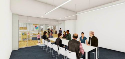 ◆多目的協議スペースは隣接する集会室と一体的に利用可能(可動の間仕切り)