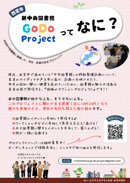 市民の認知・関心・機運を高めていくために、図書館の魅力や活動を若者目線で発信する『協働のアクションプロジェクト』です。