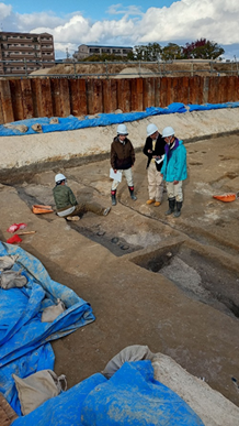 新陸上競技場スタンド及び新体育館(南側部分)の建設予定地付近を引き続き調査しています。(11月下旬撮影)