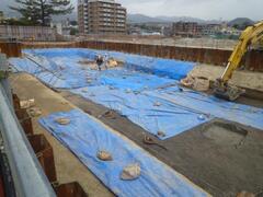 - およそ2メートル掘削。湧水があるのが分かります。中央運動公園の敷地内からは湧水が多く発生しますので、それを排水しながらの調査となります