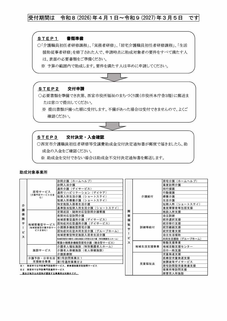 2026年度介護職員初任者研修等受講費助成金の申請について(受付中)