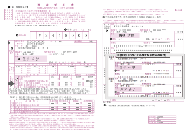 (貸与先(日本学生支援機構など)が発行する貸与利率や毎月の返済金額が記載されている書類)