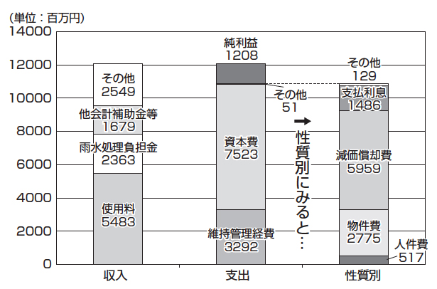 他会計補助金や雨水処理負担金などの一般会計繰入金が減少したため。 - 支出…前年度と比べて3億7700万円の減少