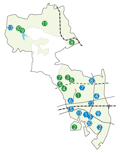 上下水道局は、施設や管路の耐震化を進めるとともに、地震などの災害時に備え水道水を蓄える施設として、学校や公園など13カ所に「緊急貯水槽」を、浄水場など水道施設11カ所に「緊急遮断弁付き配水池・配水槽」を設置しています(下図参照)。