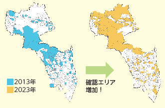- 市北部や南部での報告が増加。天敵が少ないことが増えた原因と考えられる