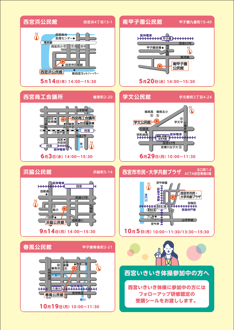 | 令和8年5月14日 | (木曜日) | 14:00~15:30 | 西宮浜公民館 2階 | 西宮浜4丁目13-1 |