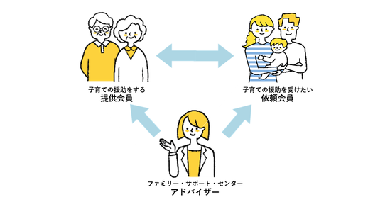 地域の中で子供を預け、預かりあい、地域ぐるみの子育て支援を目指すものです。「子育ての援助を受けたい人(依頼会員)」と「子育ての援助を行いたい人(提供会員)」が会員となって、お互いが助け合いながら、地域の中で育児の援助活動を行なう会員制の組織です。