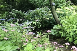 ヤマアジサイを中心に約50品種70株が植えられています。