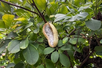 シロバナアケビ(キッチンガーデン北側)11月上旬