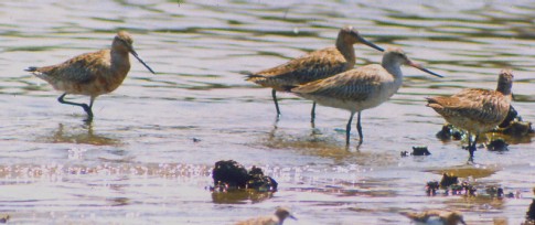体長20センチメートルほど。甲子園浜に来るシギでは最も数が多く、群れる性質が強い。