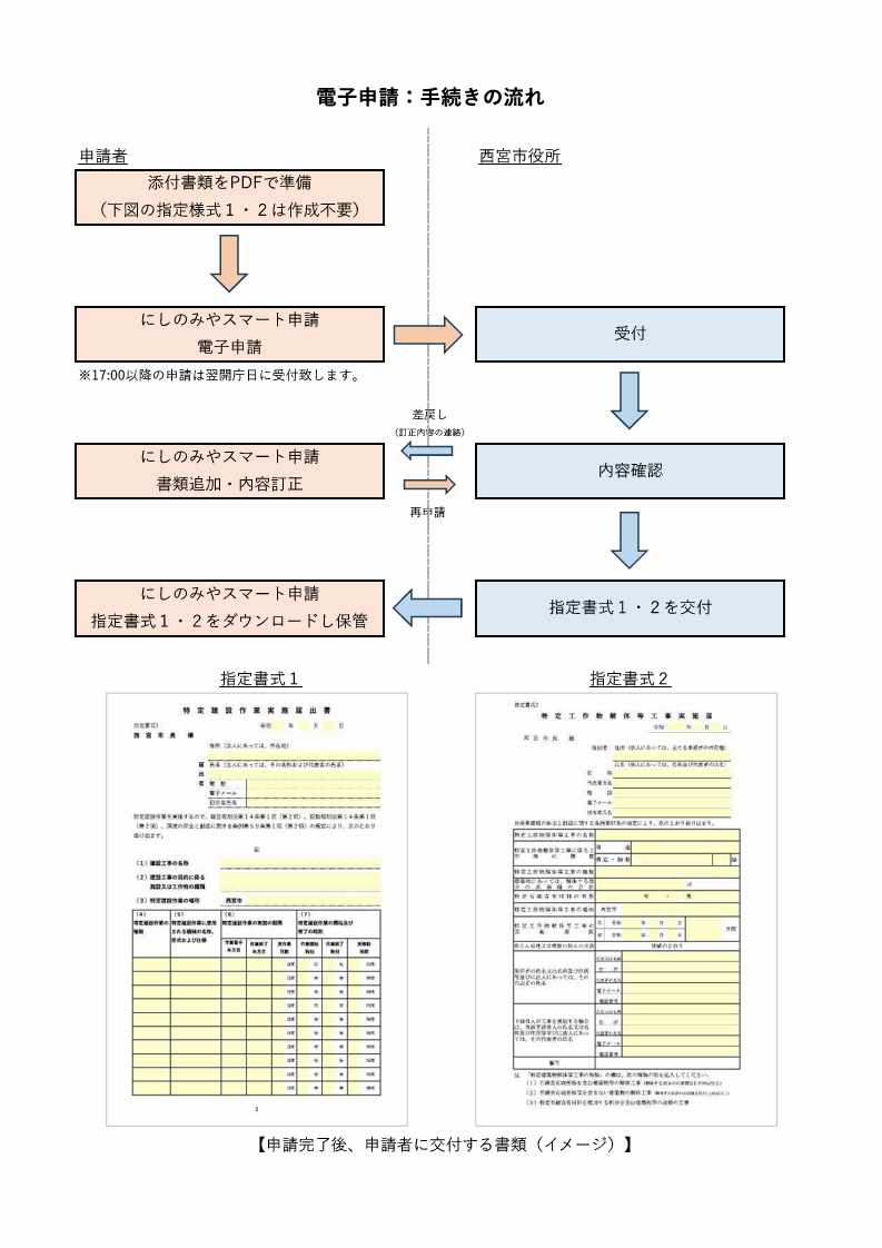 申請完了後、「にしのみやスマート申請」にて交付物(指定書式1・2)がダウンロードできます。