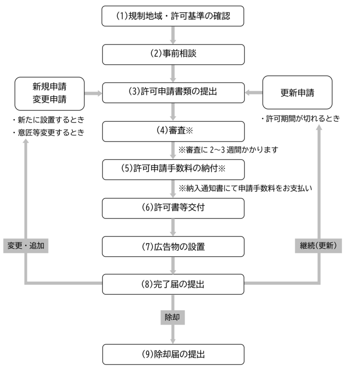 屋外広告物の掲出を計画される場合は、必ず「事前の協議」を行なってください。