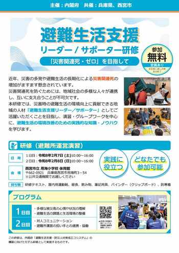 「避難生活支援リーダー/サポーター研修」参加者募集