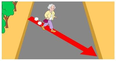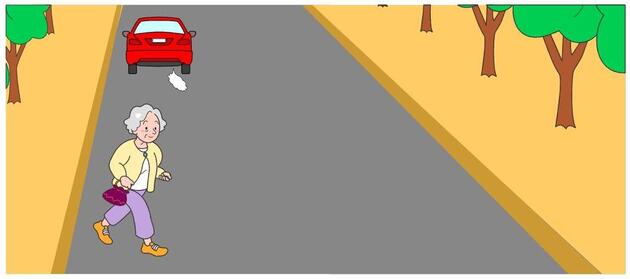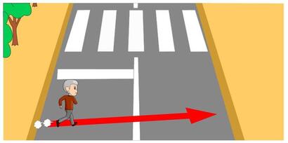 道路を斜めに横断すると、目的方向以外の周囲に注意が向かなくなり、近づいてくる車に気づくのが遅れる可能性があります。