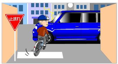 「一時停止」の標識がある場所では、自転車は必ず止まらなければなりません。