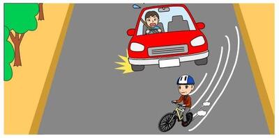 進路変更する際は、一度止まって後ろや周囲の安全を確かめましょう。