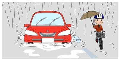 傘をさしながら、スマートフォンや携帯電話を操作しながら、イヤホンやヘッドホンで音楽などを聴きながらの「ながら運転」は、不安定な運転になったり、周囲の自転車や歩行者などに対する注意が不十分になり、重大事故に直結する危険行為です。絶対にやめましょう。