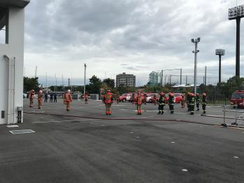 昨年度、竣工した西宮市消防訓練施設での初めての火災対応救助研修であり、充実した訓練設備で、現場さながらの臨場感のある訓練を行うことができました。また、茨木市消防本部との合同訓練により、普段の訓練とは違う刺激や新鮮さもあり「顔の見える関係」を築くこともできました。