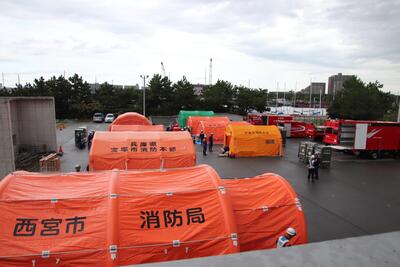 緊急消防援助隊兵庫県大隊(阪神ブロック)後方支援部隊集結訓練を実施しました。