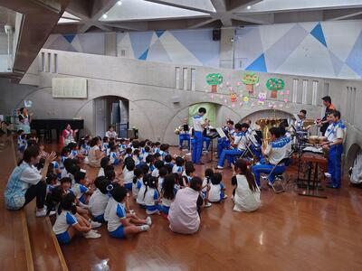 音楽隊のコンサートでは、音楽隊員と園児全員でコンサートを楽しんでいました。