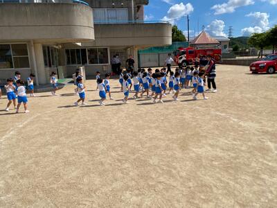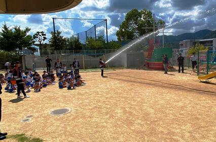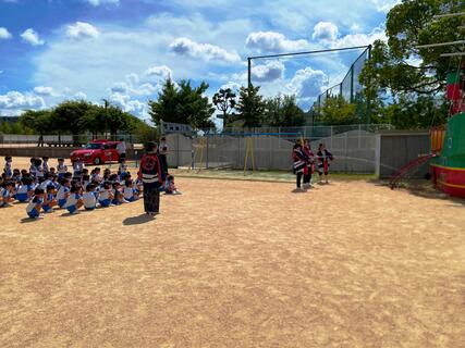 令和7年9月3日に学校法人覚前学園東山幼稚園で幼年消防クラブ消防訓練を実施しました。