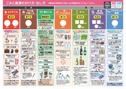 分別方法とお住まいの地域の収集曜日をご確認いただき、ごみステーションにお出しください。