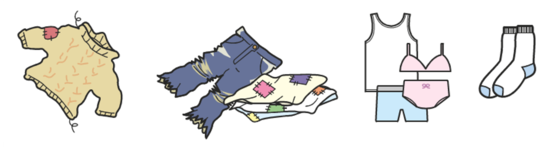 • 靴下、下着、毛糸製品、着物、汚れたり破れたりした衣類など