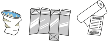 • 紙コップ(防水加工品)、アルミ箔を貼った紙パック、感熱紙(レシート・FAX用紙)など
