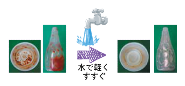 - 中身を空にして汚れているものは、ふき取るか水で軽くすすいで出してください。