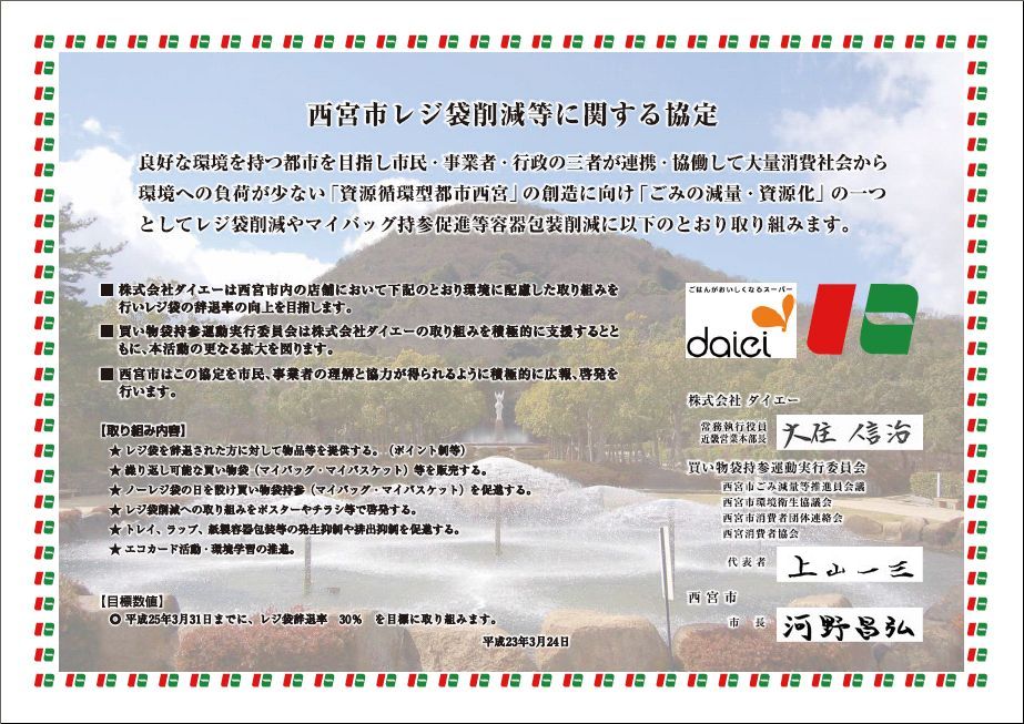 平成23年度 西宮市レジ袋削減等に関する協定を締結しました(平成23年3月24日)