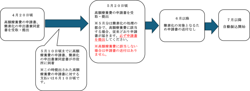 簡素化を希望する方は、令和8年(2026年)4月以降、高額療養費に該当された場合に申請書と一緒に送付される『国民健康保険高額療養費支給申請手続の簡素化(自動振込)申出書兼同意書』(以下、「申出書兼同意書」)を提出してください。