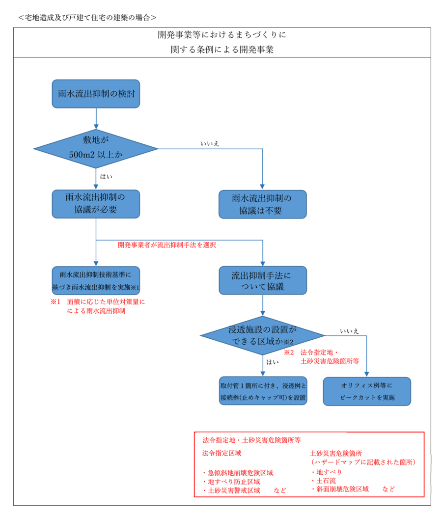 法令指定地・土砂災害危険箇所等における雨水流出抑制について