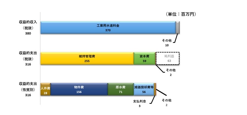 令和6年度末の給水事業所数は、前年度と同数の52所で、1日当たりの契約水量は前年度と同数の1万7,127立方メートルとなりました。