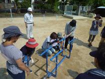 公園内の緊急貯水槽を利用した応急給水訓練を実施