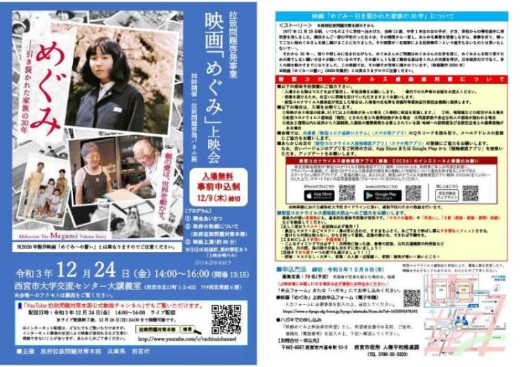 ・映画「めぐみ」上映(日本語字幕付き)