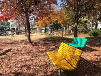 また、令和4年10月には、親子を対象としてベンチの塗装を体験していただくイベントを開催していただき、11基のベンチがカラフルに生まれ変わりました。