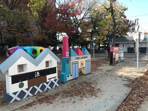 ミニチュアの街並みでの「ごっこ遊び」、遊具遊び、そしてカラフルなお店での記念撮影など、様々な楽しみ方ができる公園です。