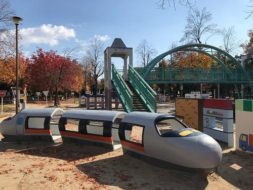 鉄道遊具(新幹線車両3基、駅、橋、トンネル、信号機) |