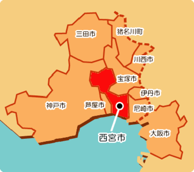 大阪・神戸から市の中心部(阪神西宮駅・JR西宮駅・阪急西宮北口駅)は、約15から20分です。